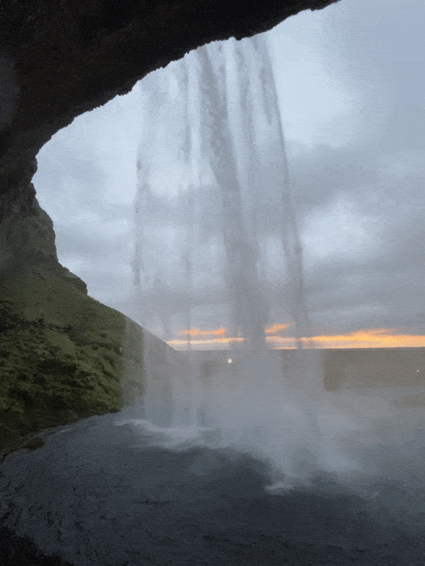 这个非常建议大家在傍晚夕阳的时候去,刚好阳光透过瀑布的时候是最好看的。这一张是从瀑布里往外看,远处还有夕阳的余晖真的非常美妙。